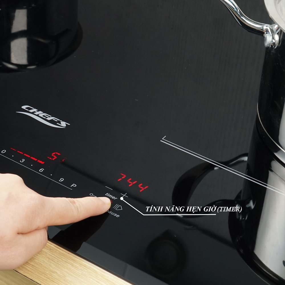 Hẹn giờ (Timer): Bếp từ Chef’s EH-DIH836 có thể hẹn giờ độc lập cho từng vùng nấu, thời gian hẹn đến 1 giờ 59 phút